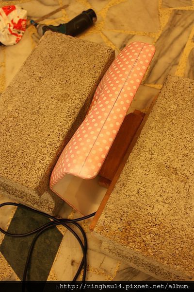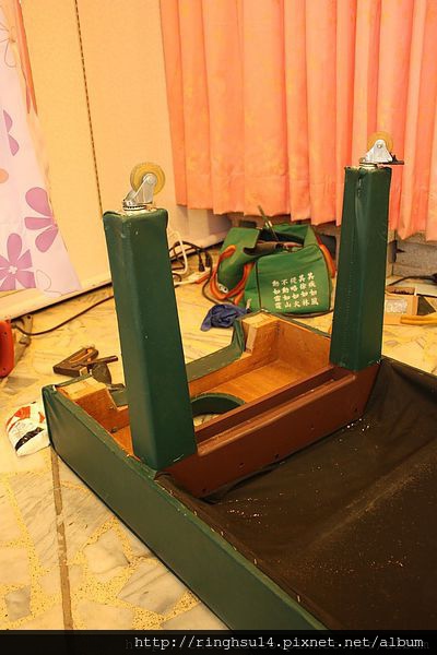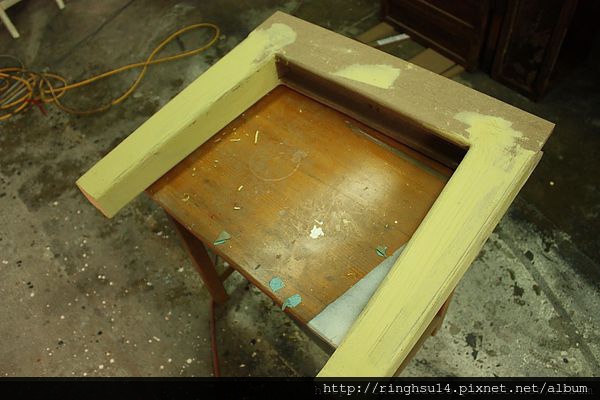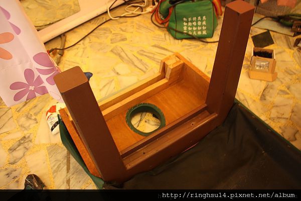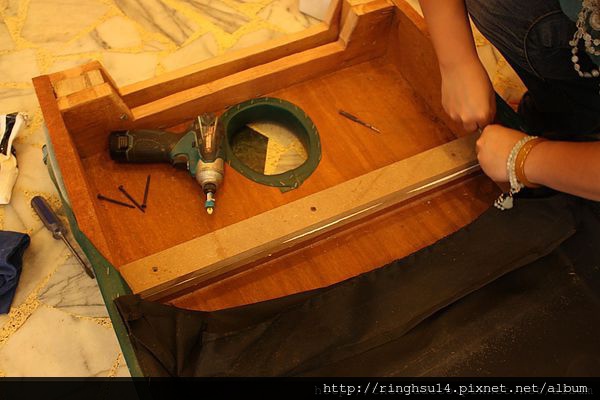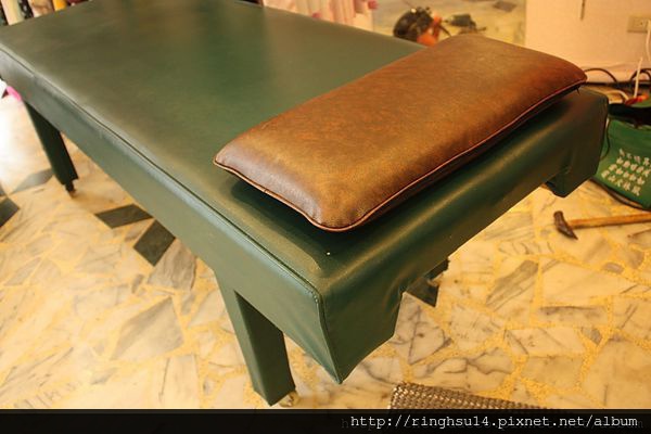因為老板娘不敢嘗試紅配綠,只好將皮革重新繃上。