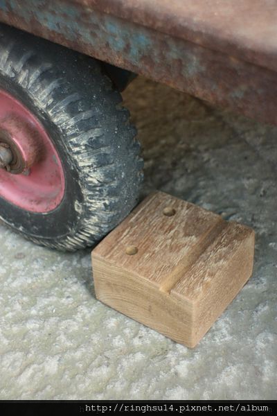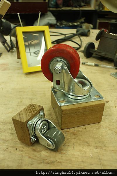 裝輪子變溜冰鞋。有些不容易固定像鐵腳之類的大型物件可以挖洞插榫裝輪子使用。