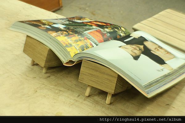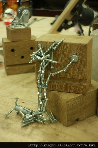 角度閱讀架,做法是在眼睛裡塞兩顆螺絲調整深度,因為是手工鑽孔深度難免不一樣。