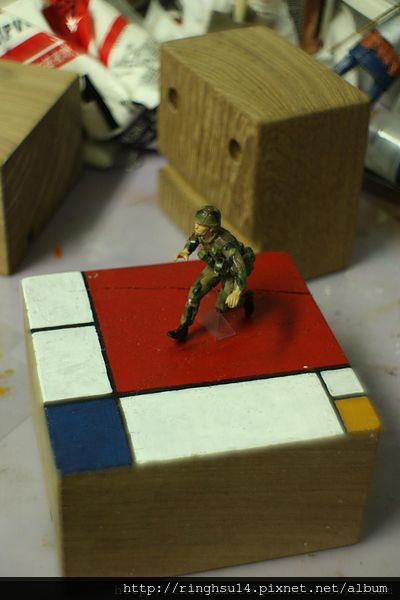 踩在蒙德理安之上,屬於私人的微創作。有裂痕或結眼的木塊是工坊的限定商品,師傅會將它們留下來創作加工。