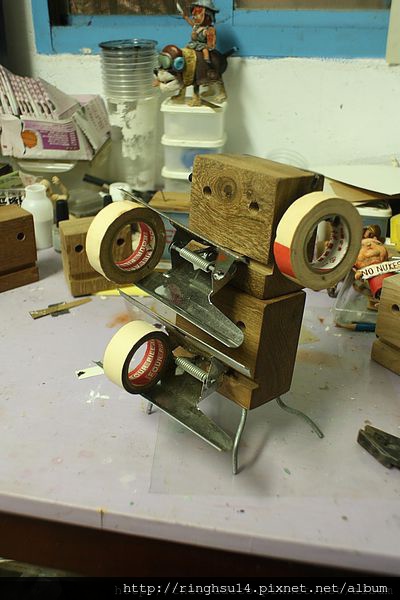 支架的固定方式,質量足夠的木塊適合當底座,加上變化萬千的鐵絲創作可以充滿無限想像。