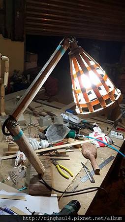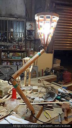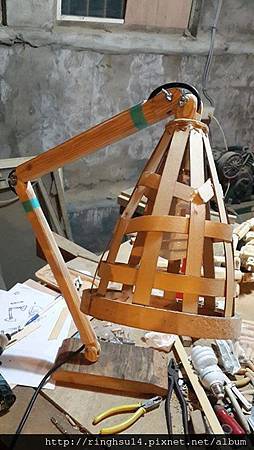 木製的關結抬燈,這個其實不難,穩定的底座,用三組三缺榫,加360度活動關節,想辦法藏線就能自由自在的照亮各個角落。